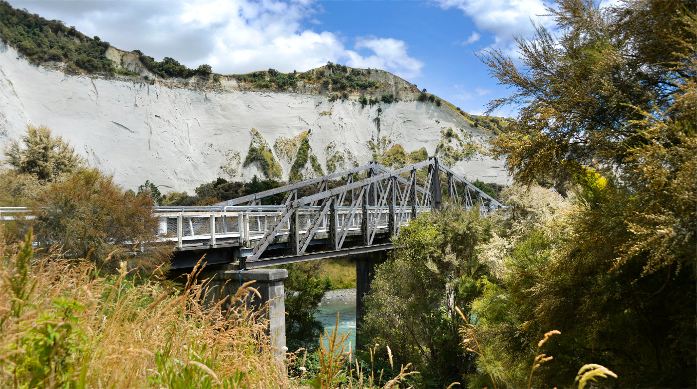 Taranaki2024314 January 16, 2024 1400 × 782 Those lovely white cliffs at Mangaweka The old bridge, now pedestrian only