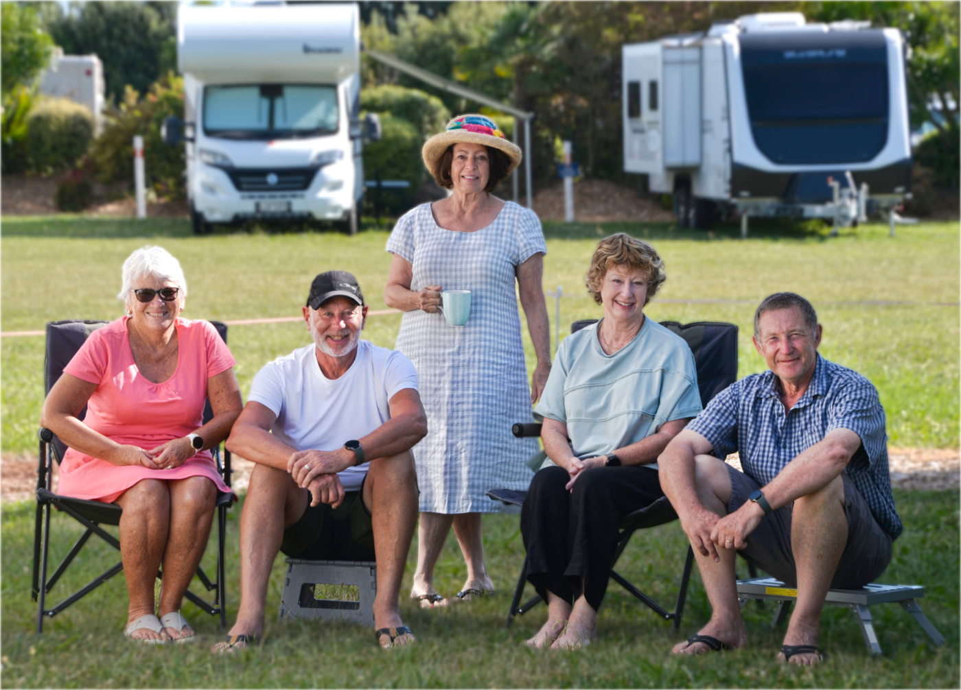 The next day we headed off through Waipukurau and into the back of Hastings, keeping an eye out for a vineyard to stop at for lunch. Being New Year’s Day, though, most places were closed, so that idea was quickly shelved. Instead, we carried on to Eriksen Park, where we met Helen and Graham and caught up with Steve and Rosemary. It was great to see everyone again, catch up properly, and enjoy a glass of wine together.