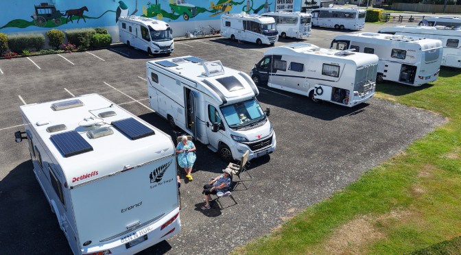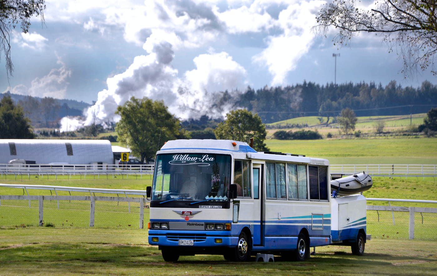 We’d only just parked up, opened a few vents, and poured the coffee when Peter heard that the road north had reopened. So, off we went again! By then it was about 3pm, but we still had enough time to make it to Taupō, where we stayed at the Taupo Racecourse.