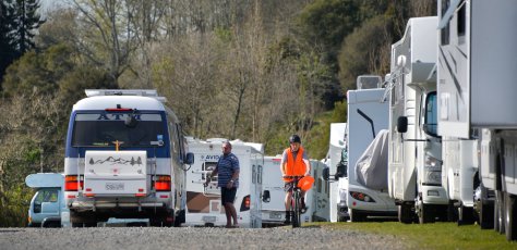 We were going to go over to the hall again for the final farewells and raffle results, but the weather was awful, so we decided to take advantage of a spell in the rain and head for the gate before the rush. Once we got to Ngatea, we refueled, emptied tanks and had a cup of tea.