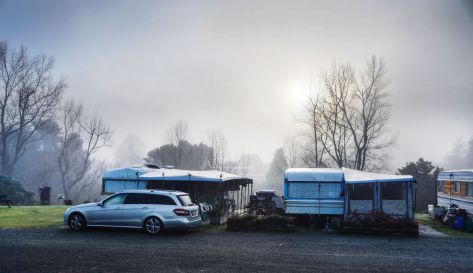 Some of their Caravans in the fog!
