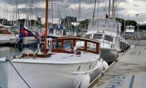 Alan and I are both ex Launch Captains of the CYA and have been on the committee and helped organise different parts of this great annual event. My old boat Rorqual was still in bits in mid restoration by my son Andrew, so I was really pleased to be able to go down with Alan on his 1928 Lanes launch, Raindance.