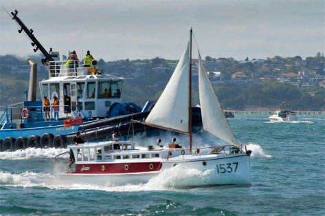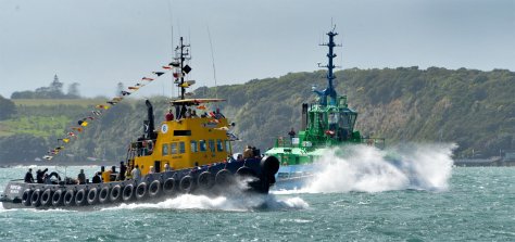 The tugs were led by Sterling which has won many classic boat races. Te Hauraki was in the hunt too until it retired by the container terminal.