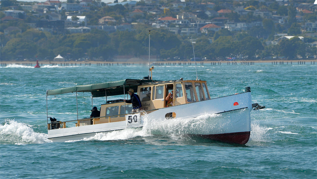 By the time we got to Devonport Wharf which is about half way down the harbour, we were well ahead of most of the fleet and only one of Drew’s mates in a Thundercat with a 50HP Yamaha on the back was with us. He spent 10 minutes or so playing in our wake which provided some entertainment for us.