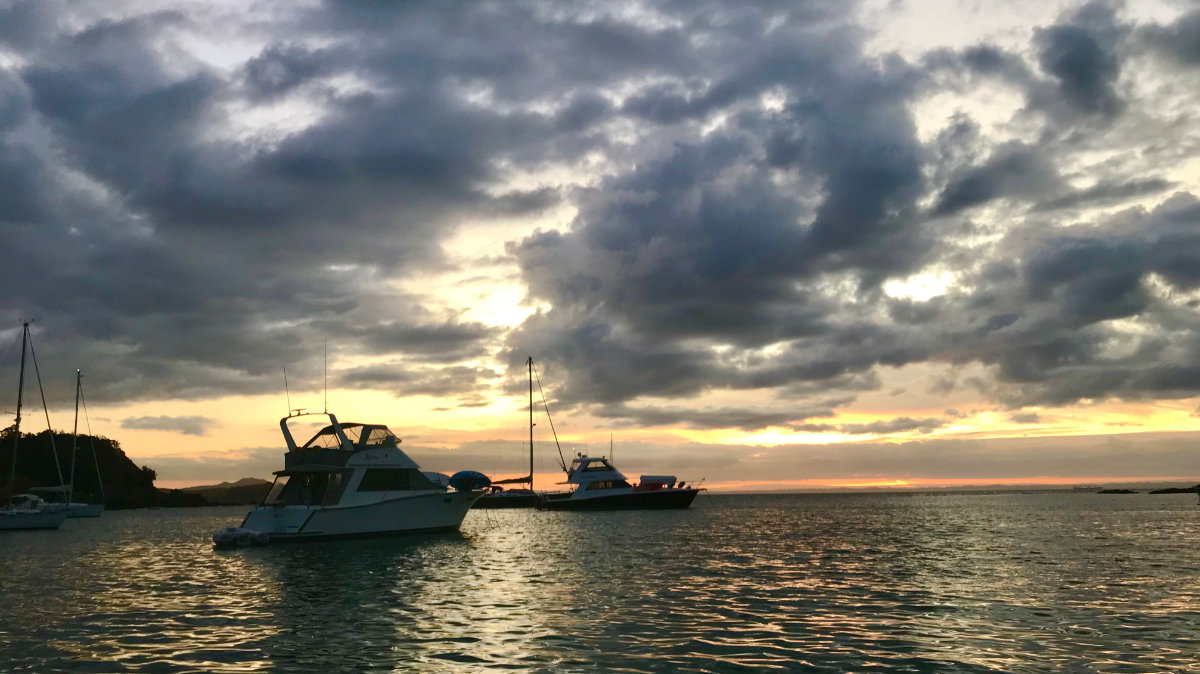 Around 5, the yachts had finally arrived and we headed into shore to enjoy a meal from heaven that Alan had already prepared. …Alan’s a great cook and is legendary for his skills in the galley 😀