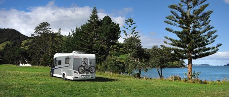 I woke up early on Good Friday and took Rafe around to the dump station and got prepared for the next few days at our prebooked beachfront site. Fiona was driving down to Ardmore to be picked up by Helen and Rob and they were due to arrive around the middle of the day. Rob was following in their new Autotrail Tracker with daughter Chloe.