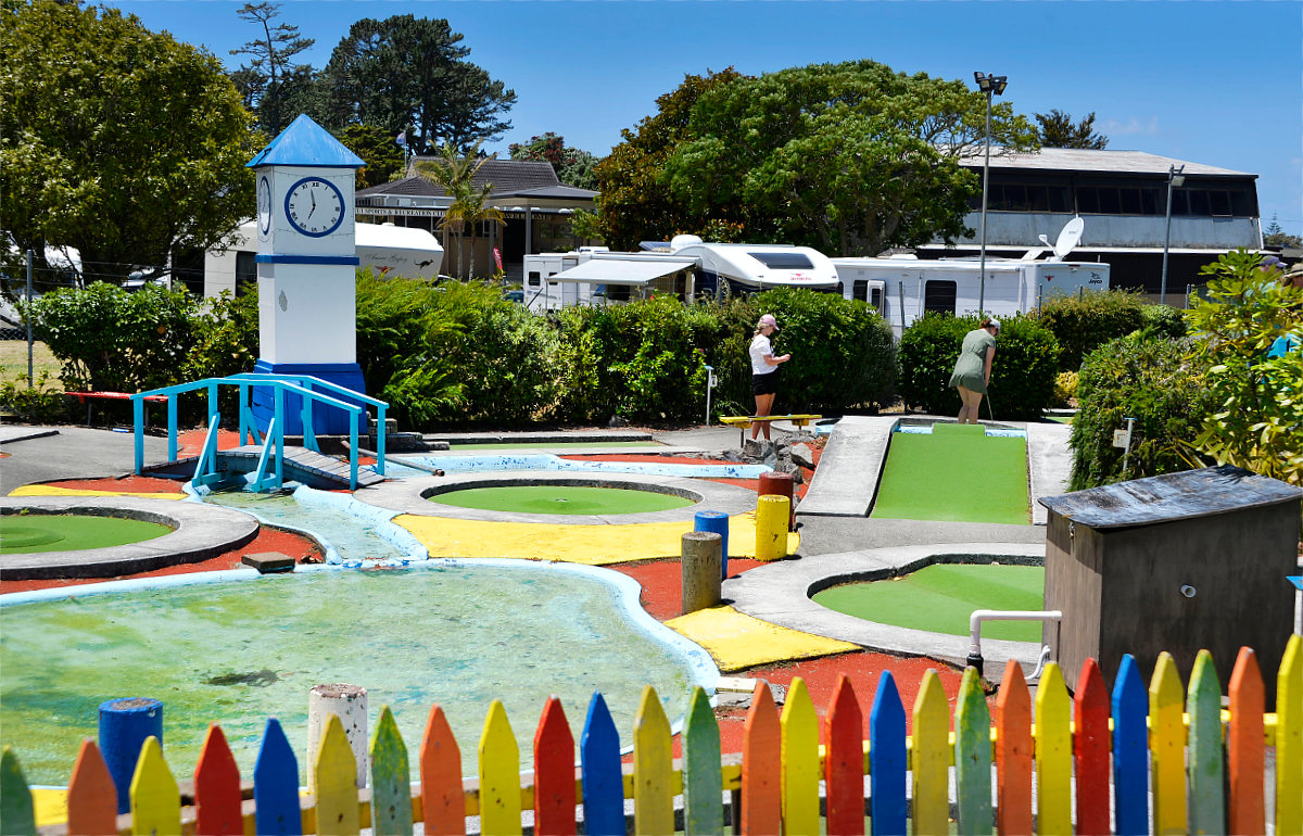 With the 32C degree temperatures plus, we figured a beach park would be the name of the game so we picked Waihi Beach NZMCA park.