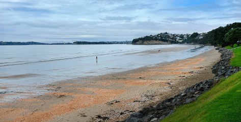 Right at the top of the camp, there are some well fenced concrete steps which run down the cliff to the rocks called Jacobs Ladder. From here you can see right up to Kawau and across to Orewa.