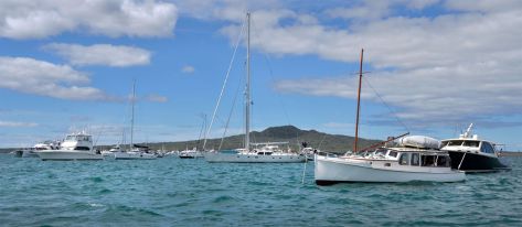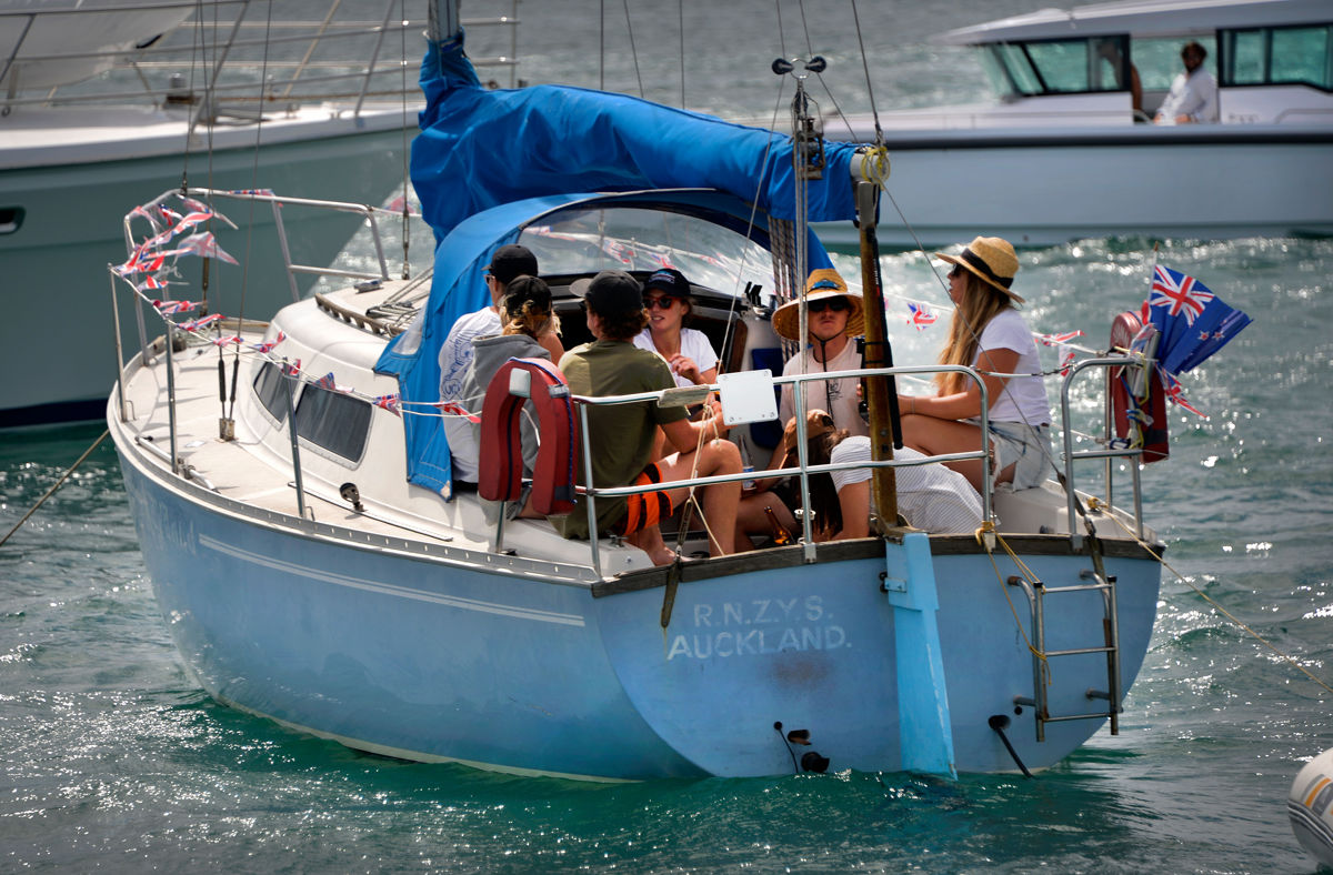 In the well sheltered upper harbour, the water was calm and there was very little wind. About an hour later, everyone was jockeying for a parking spot, some rafting with friends and the Tino Rawa Trust tender Whistleblower was on hand to ferry people into the Pub’s jetty.