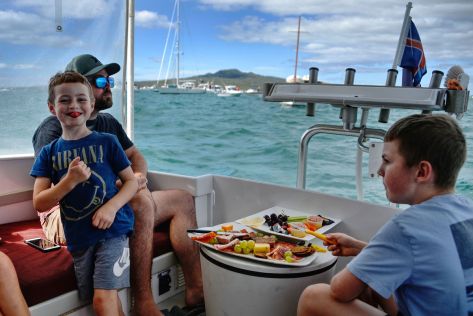The Americas Cup was on and the stars all lined up for eldest son Drew and Jenna to take us out on our old boat Rorqual. It was also Fiona’s birthday so it was a big day.