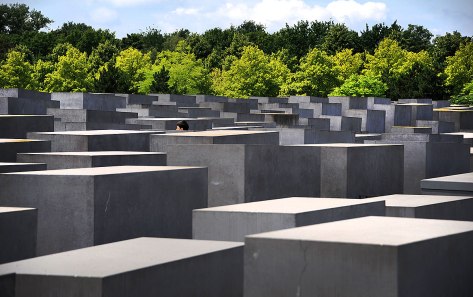 You can see a persons head popping up through the concrete blocks at the Jewish Memorial