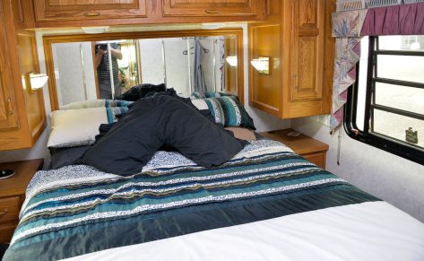 Being just 10 metres long, it is still able to parked in most places but the 250 HP Cummins underneath sounds nice. Avon is a builder so is keen on progressively making some changes and with Jo, stamping their own ideas on it.