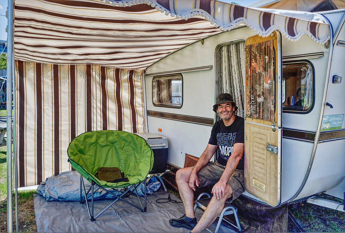 We’d only been here half a day when Fiona spots an unusual looking Caravan just along from us and says .. “Blog!” .. so off I trundle and introduce myself to Darryn. It turns out that Darryn’s dad was a very good friend of mine and mentor when I first started as a Photographer in my early teens.