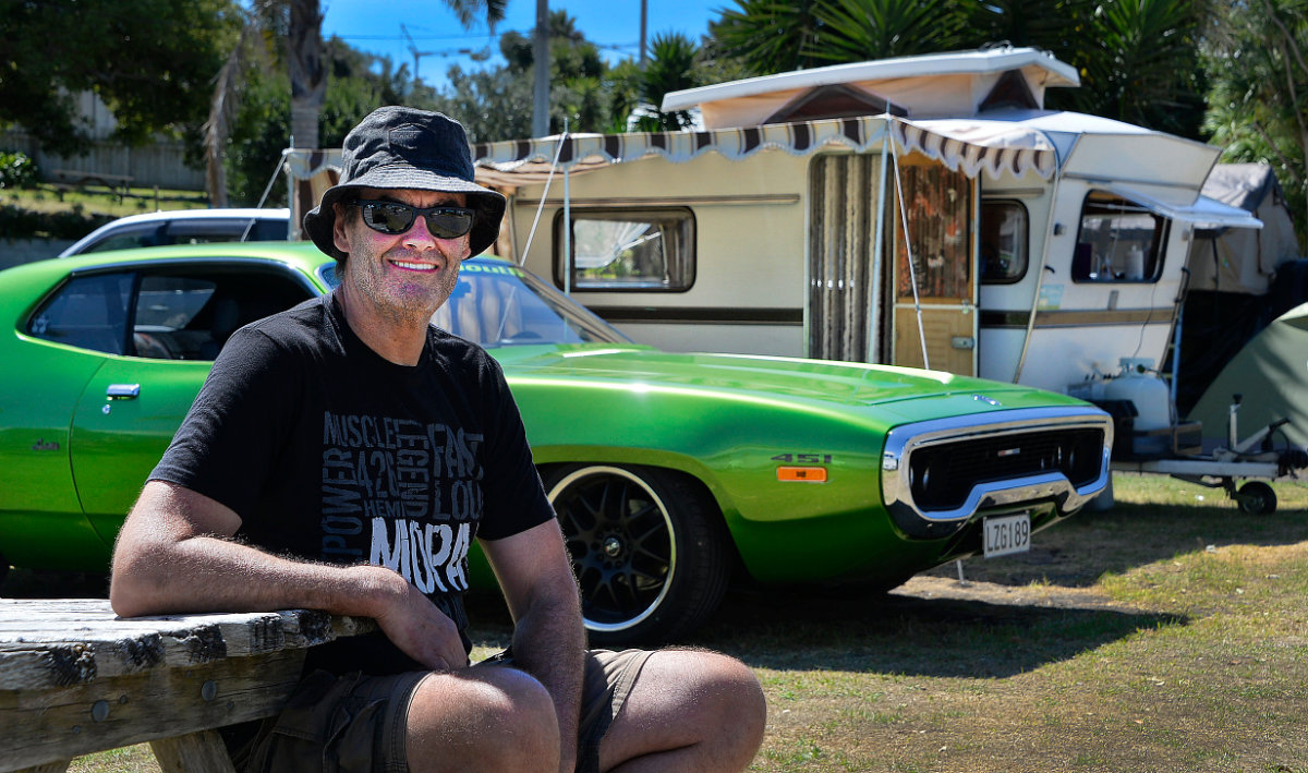 The Caravan is amazing being a 1978 Otten made in Holland which he bought in Germany.. yep, its crossed a few borders! He has done quite a lot of work on it to tidy it up but has yet to make it compliant for NZ power so was running on Solar and batteries when I caught up with him. With only an 800k tow weight and the Plymouth with the 471 V8, it would hardly know its behind!