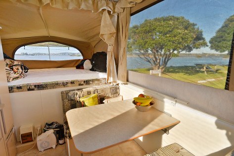 Dave was telling me that they bought it from a retired School Principal three months ago, who is clever with his hands, and along with lots of other little modifications he added a stay and pulley system so that the Pop Up Top wouldn’t sway around in the wind.. a great add on.