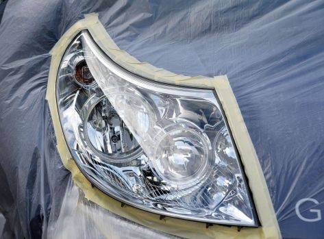 Next came the spray gear and the mask and as he sprayed each headlight, it was like someone turned the clarity filter on.. the difference was amazing. He then set the IR lights on to bake the sealant on.. After about 30 minutes, on went another coat and it looked even better.
