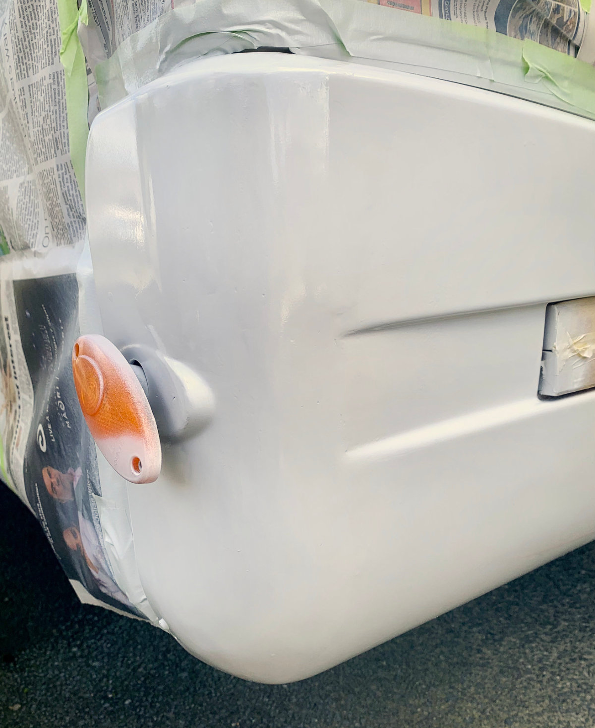 The bad news came on day 1 when after taking it off, we found that the bumper was actually fiberglass, not plastic. This meant it couldn’t be dipped to strip the paint off and they couldn’t bake the new paint on. It also needed to be sanded thoroughly before applying a special primer for the fiberglass. The good news part of this is that fiberglass is really strong.