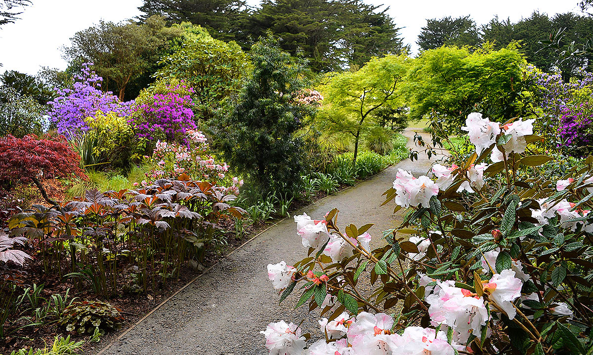 The Barkers have done an amazing job of creating a massive series of different gardens in and around the Castle. One of the features is a Pergola (the lead pic) which is huge and covered in trees creating a tunnel with a view of Dunedin and the end.