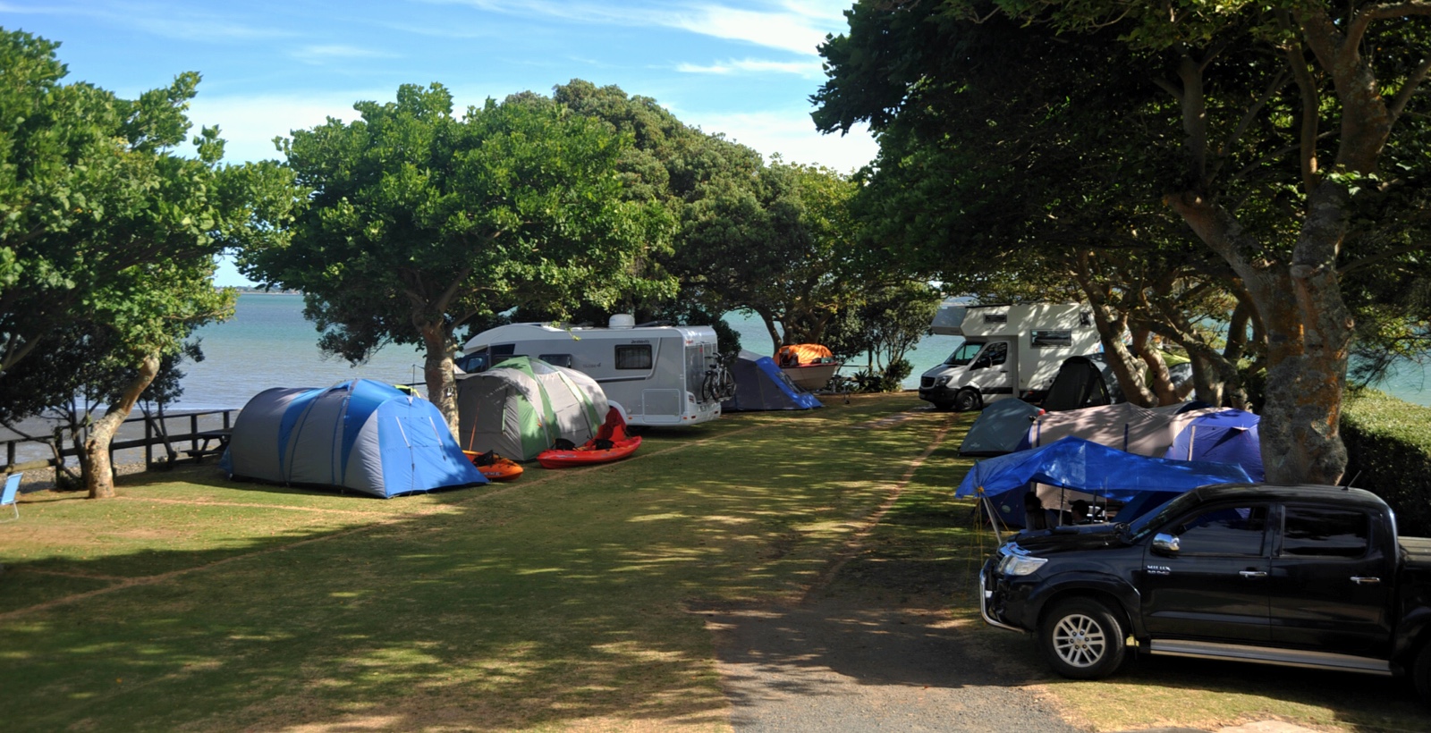 The campground, water all around