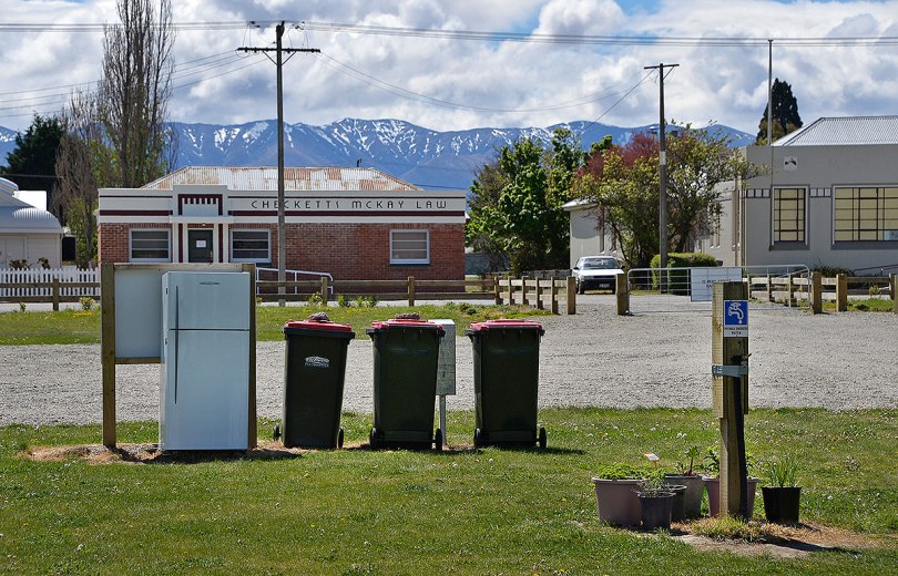 Bins, checkpoint Charlie and the water.