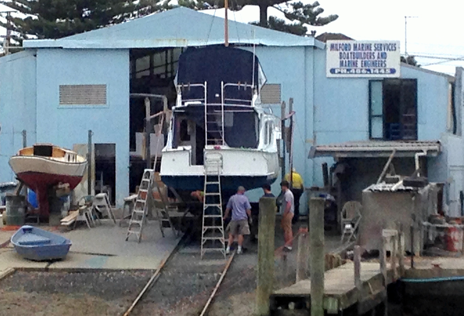 Geoff with his boat, Florence Rose on the slip looking very sharp. Son Ben on the back of Flo Ro