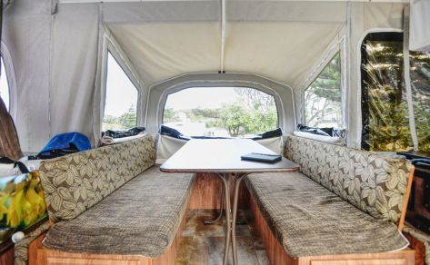 The caravan has its own story too. They found it about three years ago down in the South Island, bought it, and drove it all the way home. The hardest part, they said, was finding one in decent condition that hadn’t been knocked around. They repainted it to perfectly match the Valiant, and now the pair turn heads everywhere they go including at Mystery Creek and other classic shows.
