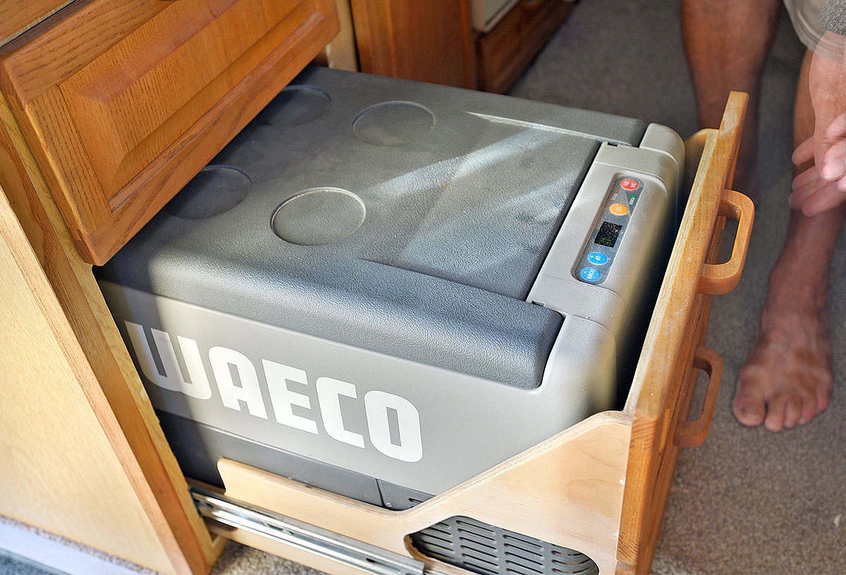 I really liked the hidden Waeco fridge in the double drawer. Nice touch.