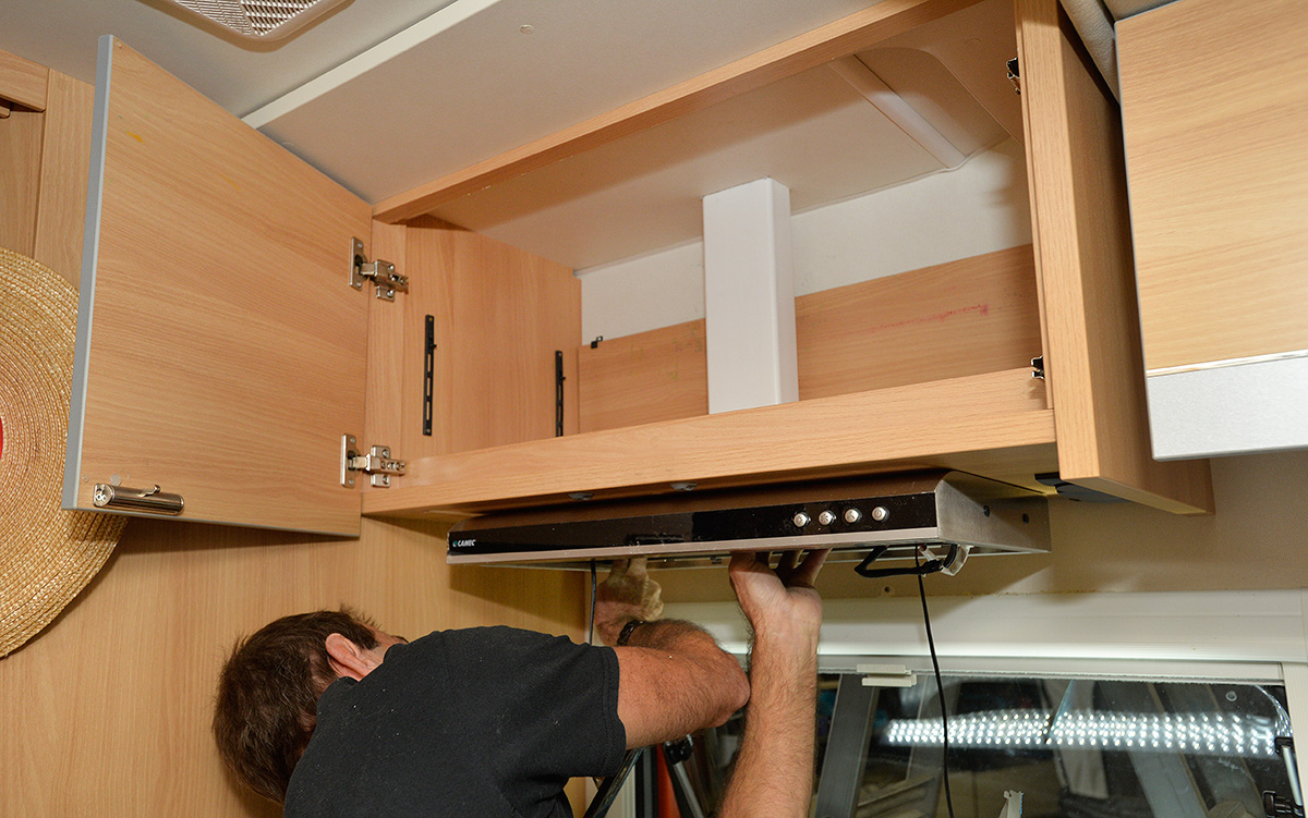 When we first bought our van, we looked at the option of getting an extractor fan over the cooking area but decided there were too many other things higher up the pecking order. Deckchairs, tables, barbeques and mats but having seen how they work in other vans, we decided it was time to finally do it.