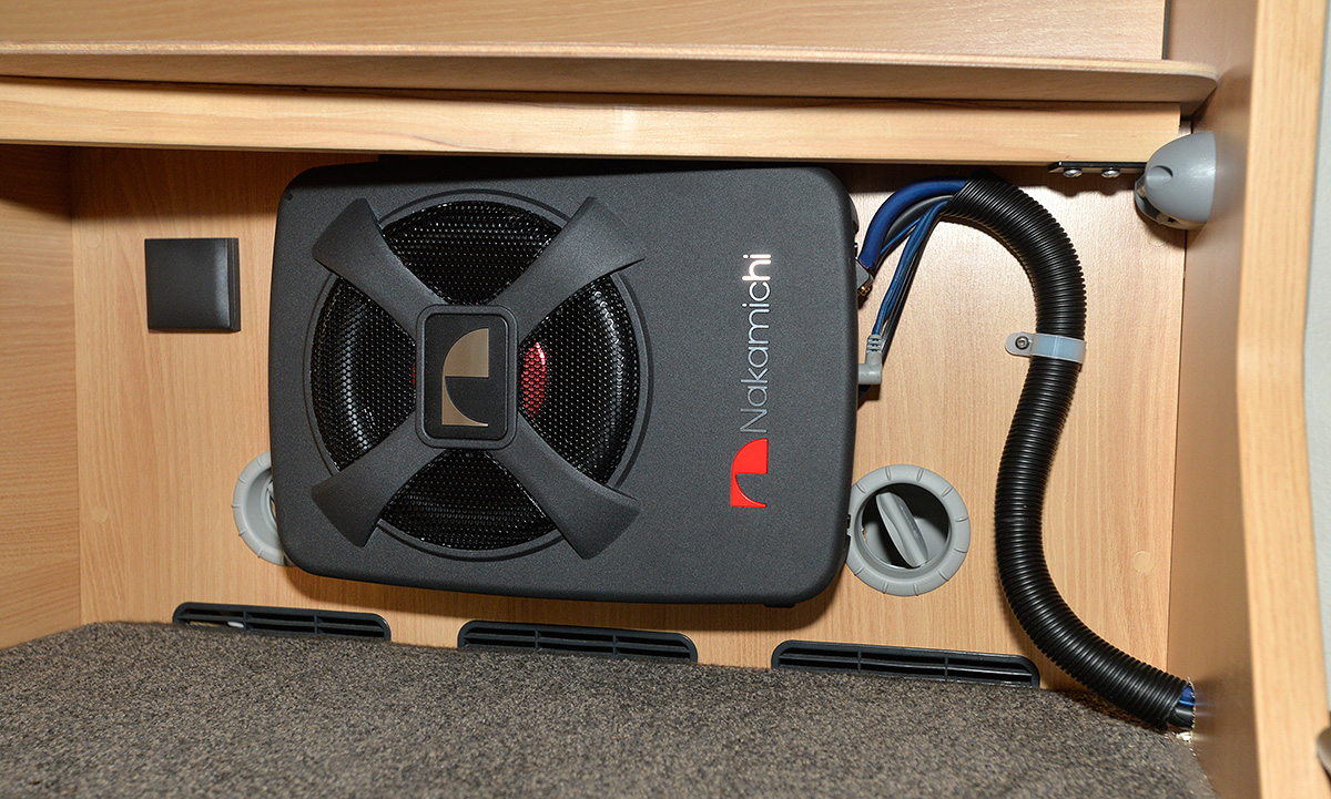 The boys at Vantage RV had warned me not to install a subwoofer as they can draw heaps of power but having done this before on our old Whalechaser Rorqual, I felt confident we could do this without thrashing Rafe’s batteries.