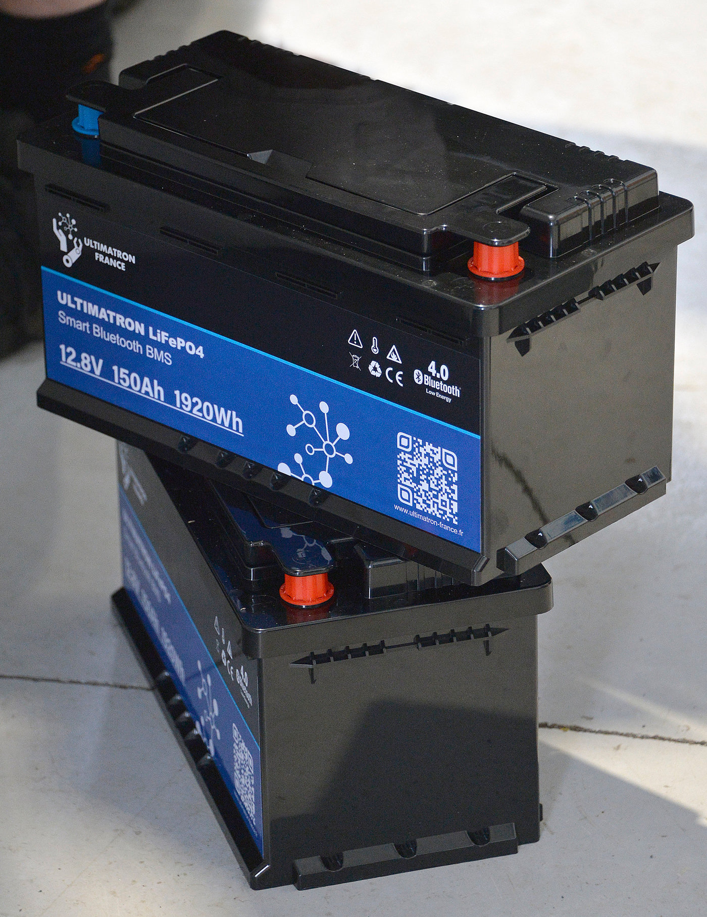 The pros:  We’ve gone from 200ah Agm to 300ah Lithium Phosphate with a much greater DOD ( depth of discharge) which means instead of being limited to about 90ah of power on the Agm setup, we now have full access to 240ah without damaging the batteries.  The batteries charge much faster so the solar panels charging should take roughly the same time for a moderately bigger charge.  The batteries are about 1/3rd lighter.  They’re guaranteed for 5 years and will last a lot longer than the agms. These smart french batteries will work happily with a gel charging setup so less to change for most of us!